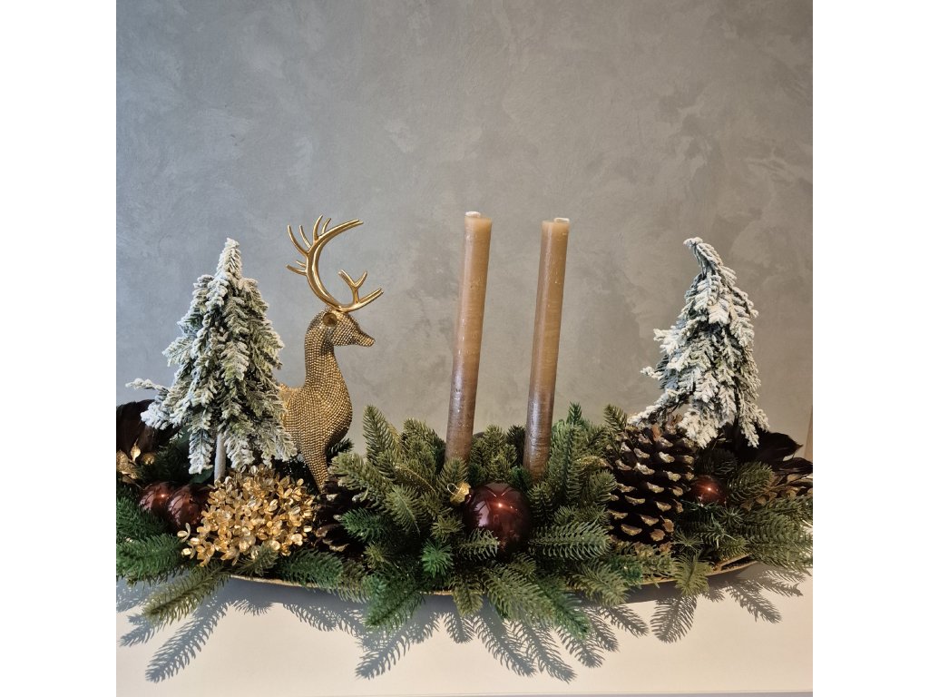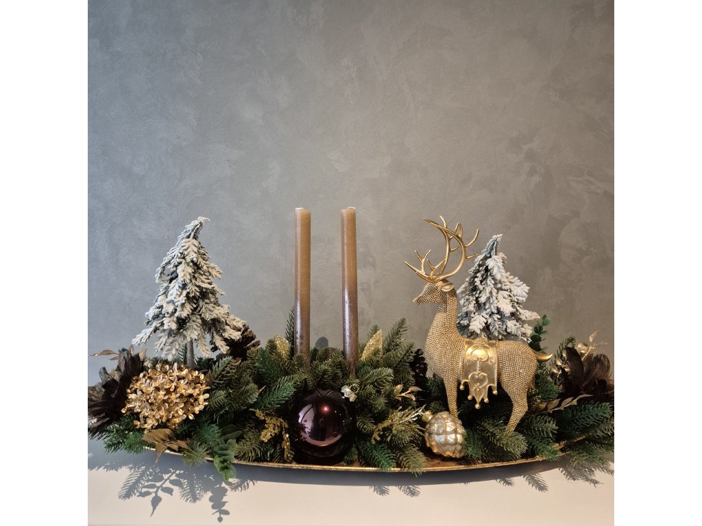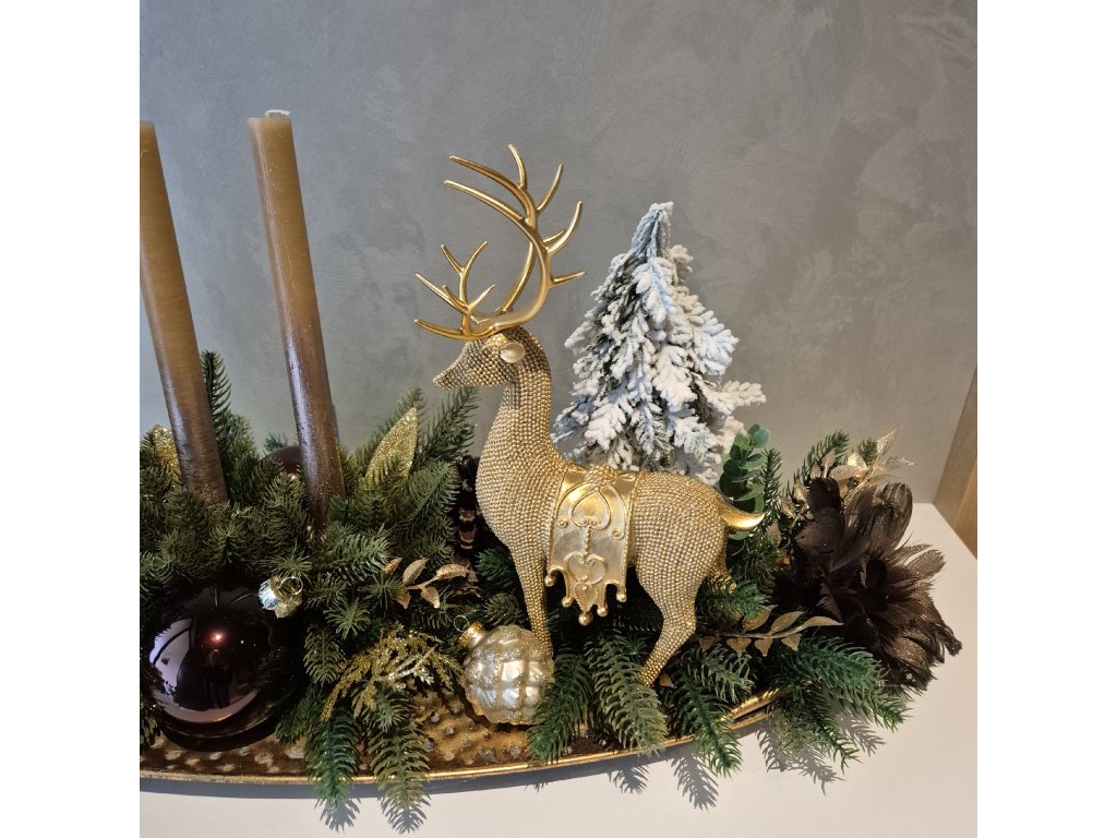 Kombinuje prvky luxusu, přírody a sváteční nálady. Ideální jako středový prvek na stůl, komodu či recepční pult.