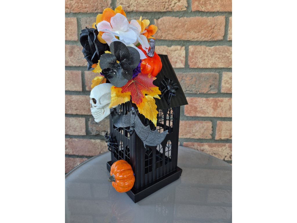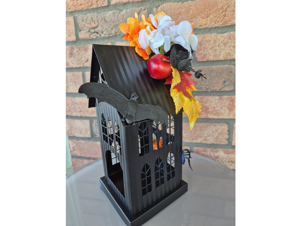 Strašidelná lucernička na svíčku ve výrazných barvách.