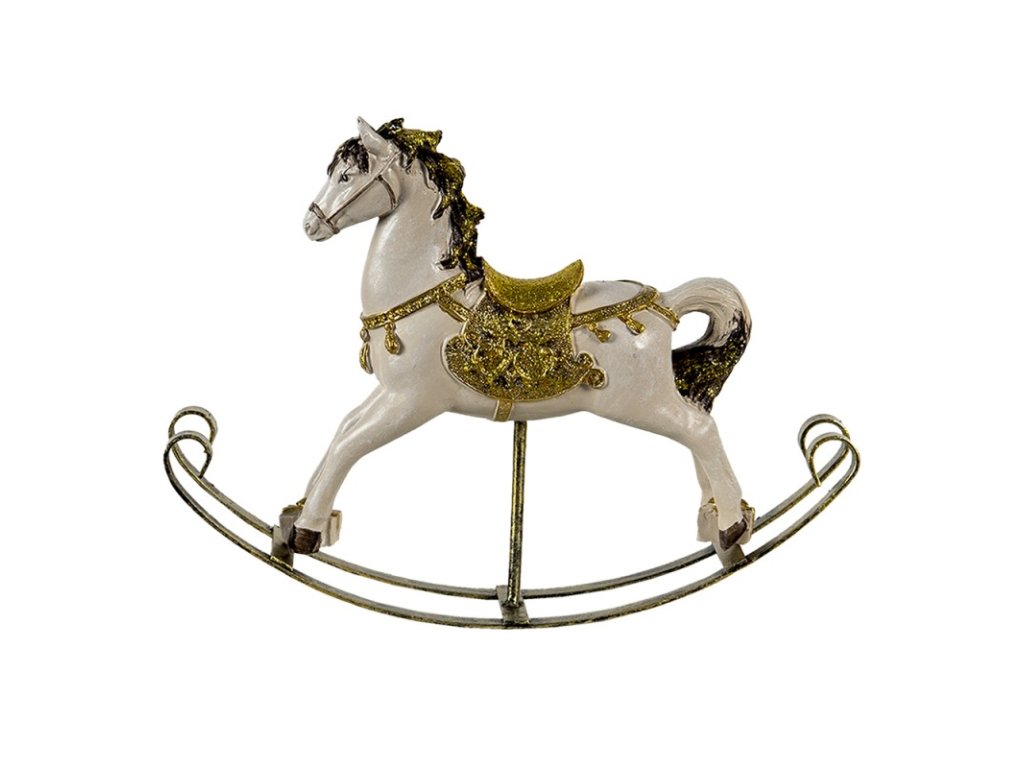 Krásný houpací koník ve zlato - bílé barvě. Umístíte do jakéhokoliv interiéru. Zdobit interiér vám může přes celý rok.