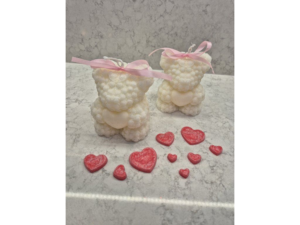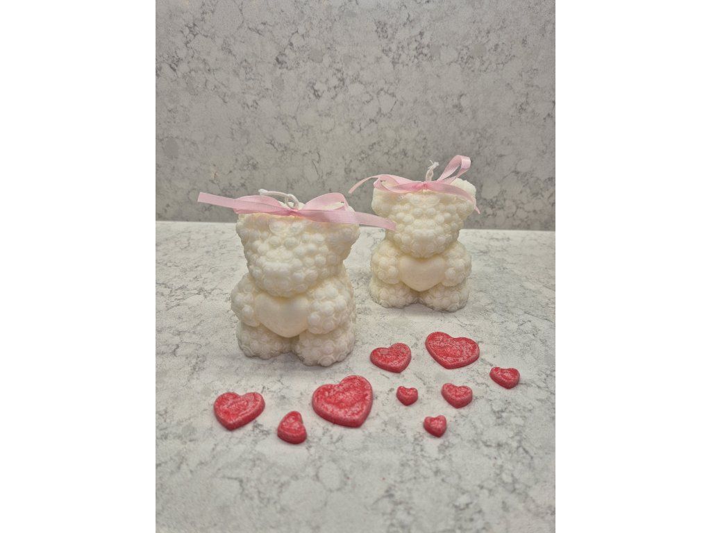 Darujte víc než jen svíčku, darujte objetí. Tento roztomilý medvídek je ručně odlit ze sójového vosku s dekorem květů růží. V tlapkách drží srdce, které symbolizuje náklonnost. Je to dokonalý dárek pro drahou polovičku, maminku nebo kamarádku.