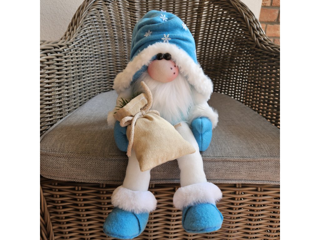 Vánoční skřítek v modro - bílé barvě.