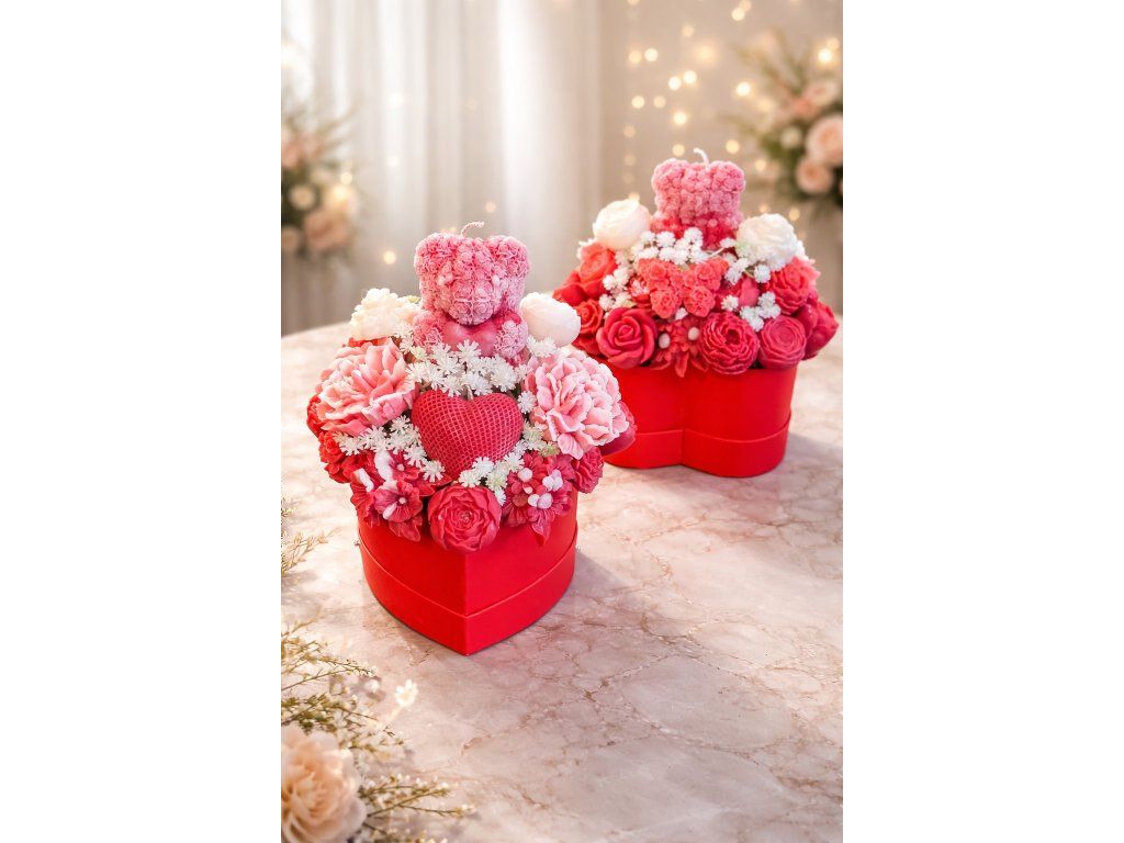 Materiál: Sójový vosk, bavlněný knot, plastové květy, papírový box
