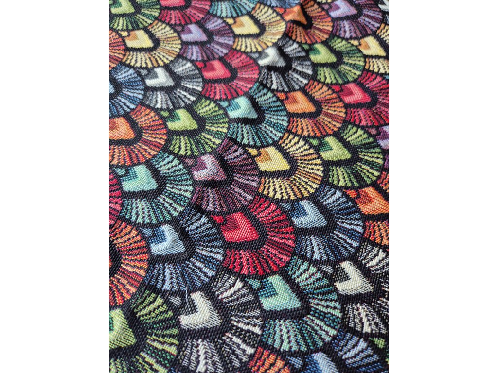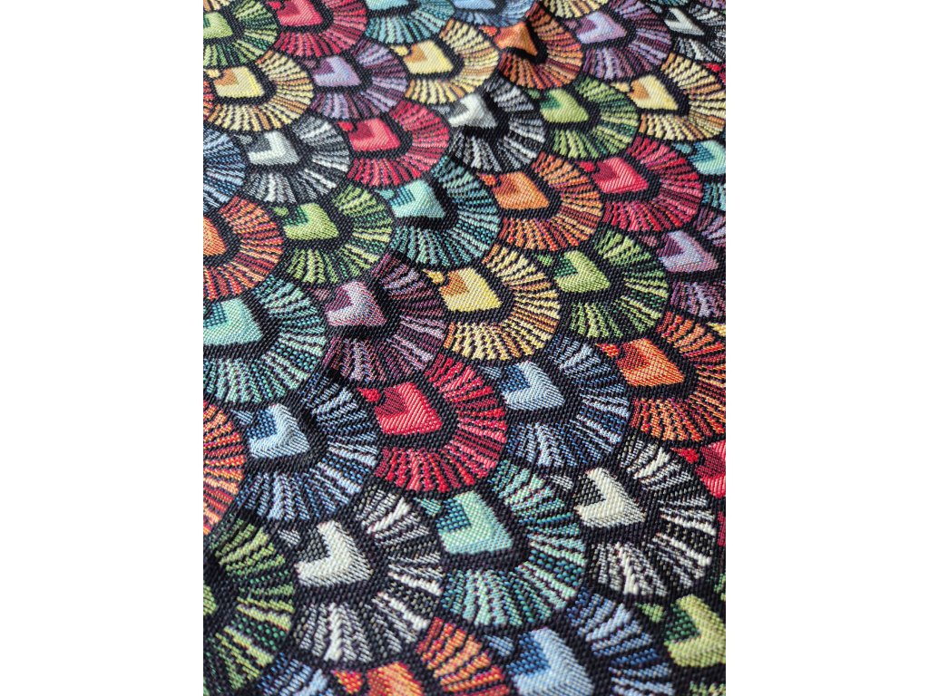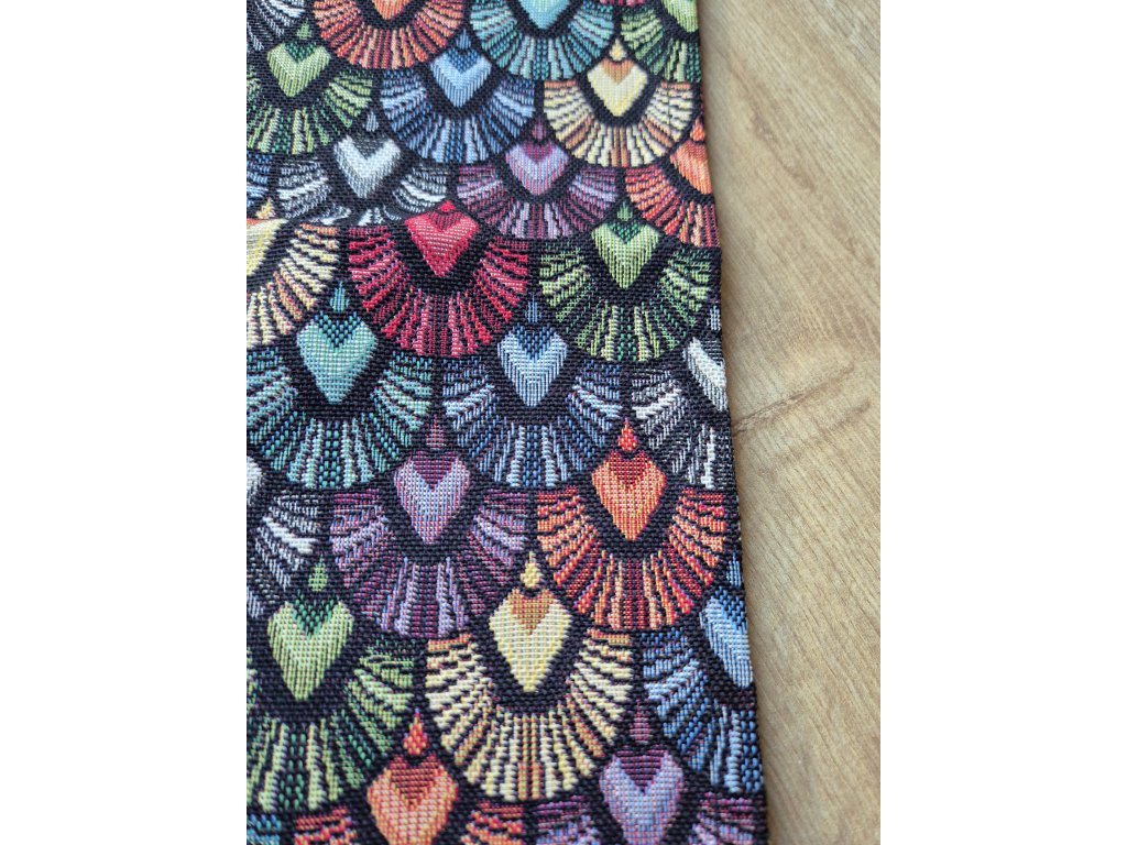 Ubrus s barevnými vějířky.