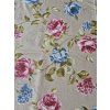 Ubrus s růžovými a modrými květy na béžové.