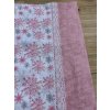 Růžové a šedé vločky na bílé. Krajkový okraj.