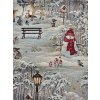 Nádherný ubrus se zvířátky a sněhulákem v zasněženém parku.