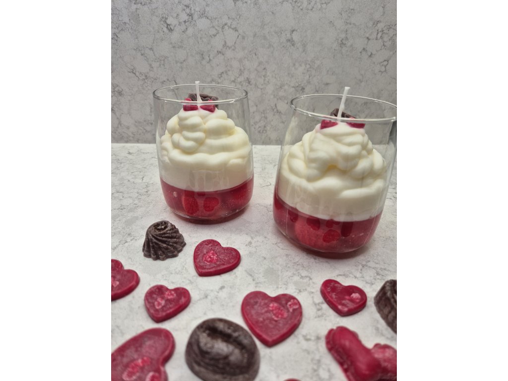 Na první pohled lákavý dezert s vůní jahod se šlehačkou. Svíčka je ideální volbou pro obdarování na svátek sv. Valentýna.